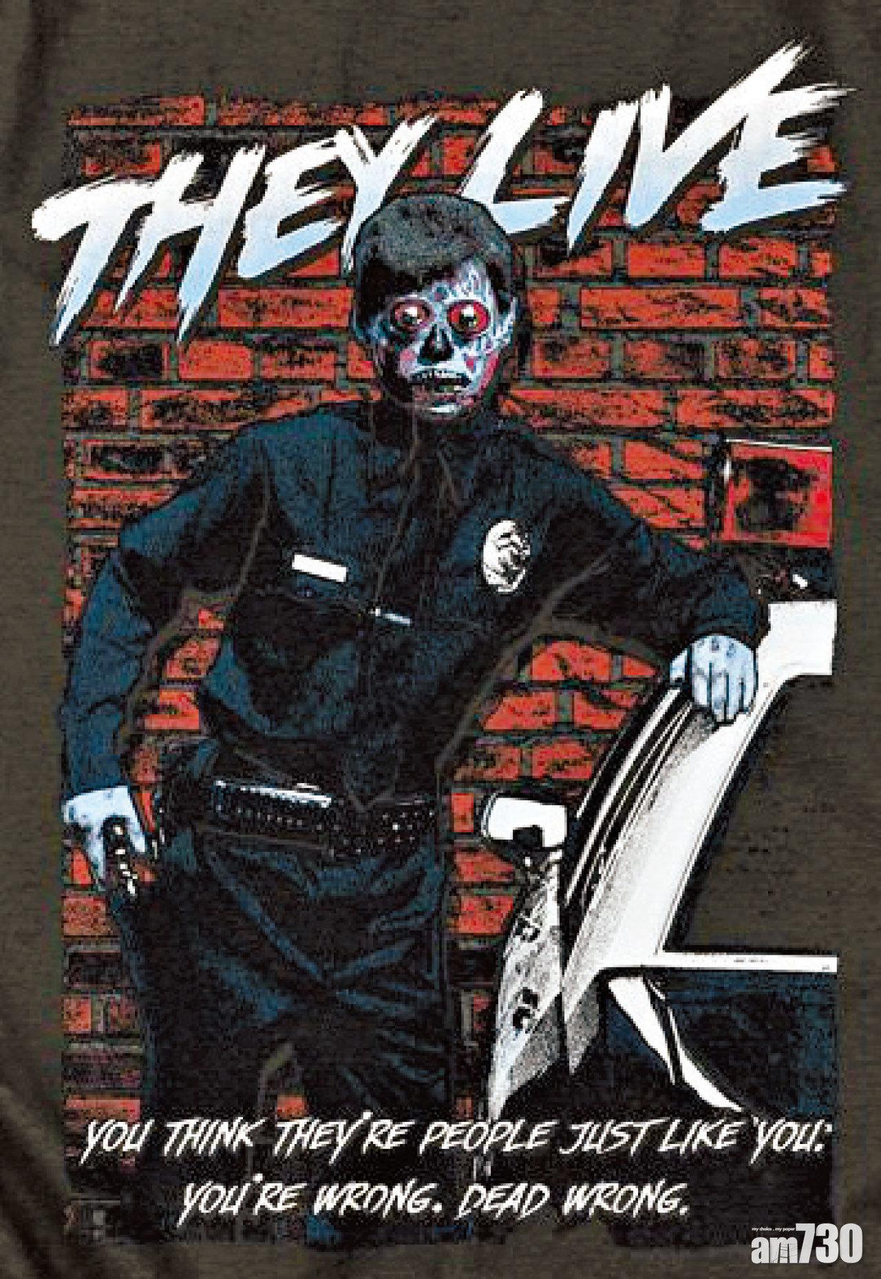 4.外國網站有一件《They Live》魔警Tee(圖2),上面寫著「You Think They’re People Just Like You, You’re Wrong, Dead Wrong」只因牠們不是人,所以要蒙面濫暴,知法犯法,惡行滔天,與民為敵,除下Full Gear,牠們混入人群做回平民百姓,可以嗎?
