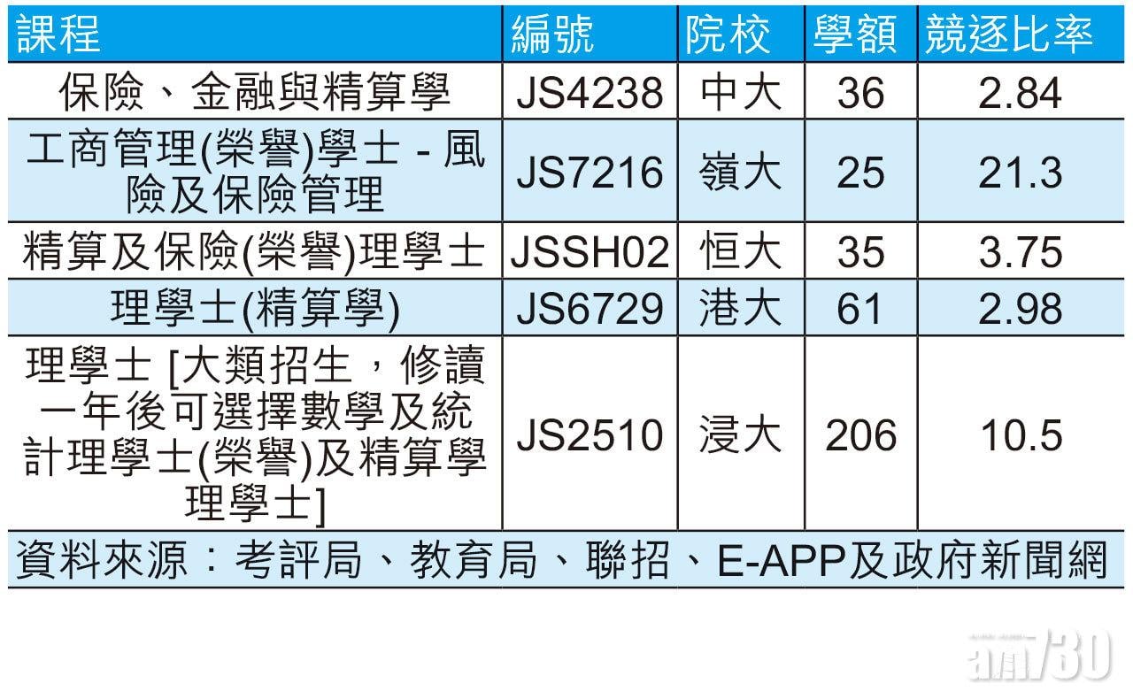 要報讀精算專業,在JUPAS中有以下熱門選擇:
