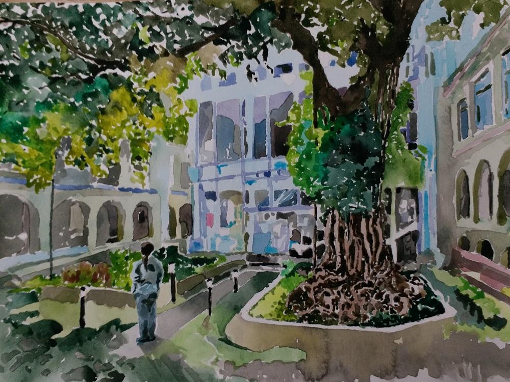 參賽作品水準極高,我和評審們挑選優勝者的過程絕不輕鬆。每幅畫作各有千秋,無論選材、風格、用色等都非常獨到。冠軍畫作以絢爛繽紛的顏色勾畫彩霞,映照著前九廣鐵路鐘樓、人力車、老爺車、的士和巴士,儼如時光倒流,回到昔日的尖沙咀;亞軍作品充分展現香港文物探知館的建築風格和自然環境,構圖充滿空間感,互相襯托,又能帶出主題;季軍畫作藉著巨樹,寓意前九廣鐵路鐘樓的歷史文化,甚具創意。