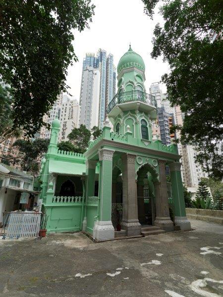 搭乘中環至半山自動扶手電梯,在堅道與摩羅廟街之間,會經過香港現存歷史最悠久的回教清真禮拜總堂。這座位於中環些利街的法定古蹟,於1916年落成,百多年來見證本港穆斯林社群的發展,現時仍然是香港穆斯林社群重要的禮拜和聚會場所。