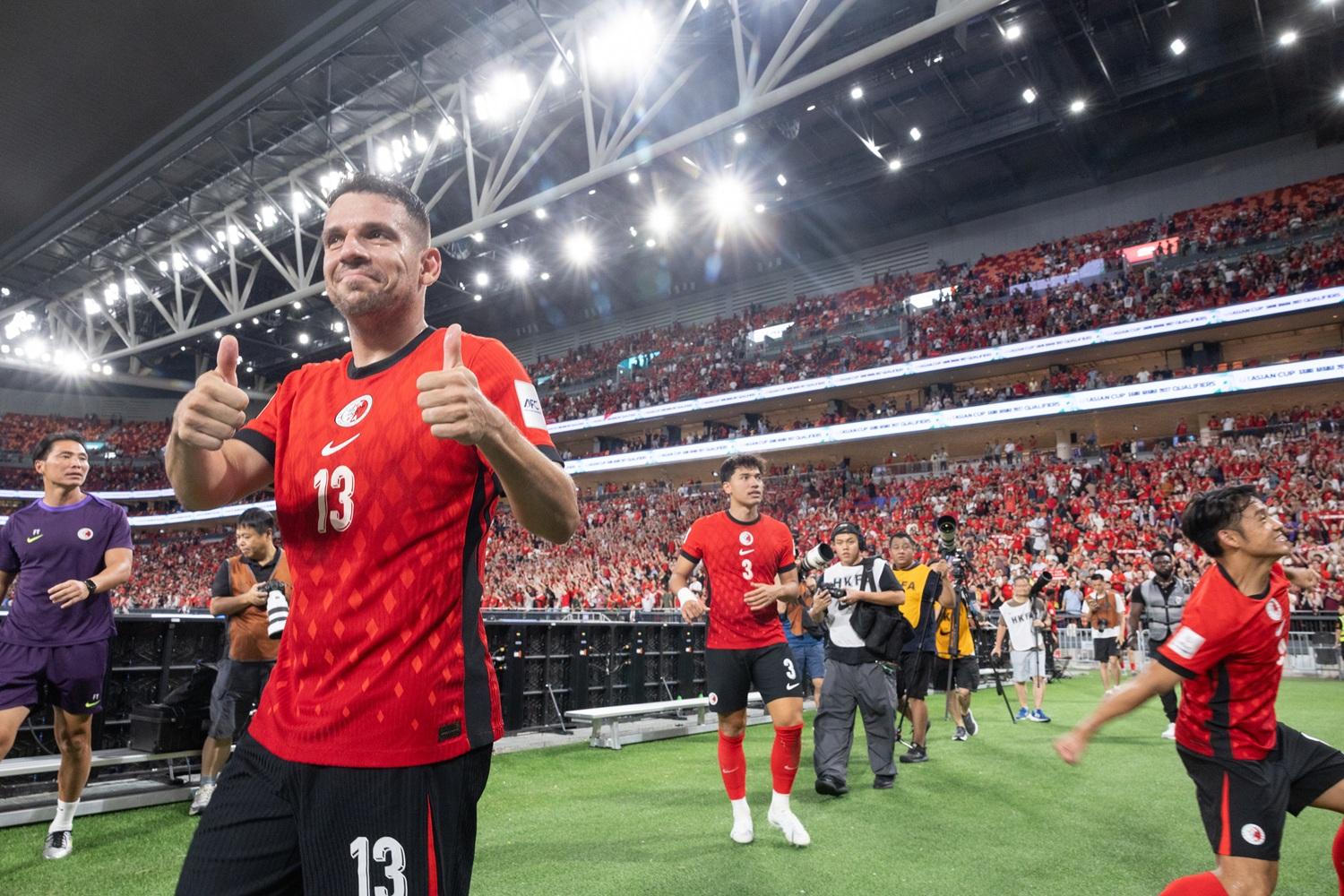2027亞洲足協亞洲盃外圍賽第三輪,中國香港隊在啟德體育園對戰印度(6月10日),四萬多名熱情球迷湧入啟德體育園,紅旗飛舞,氣氛熱烈。港隊在主場的強大支持下,以1比0力壓對手,贏得歷史性的主場首勝。當晚,「紅色巨龍、港隊勁揪」的巨型橫幅成為焦點,與球迷的震撼呼聲交相輝映,燃起濃厚的城市足球情懷,展現團結與熱血的精神。
