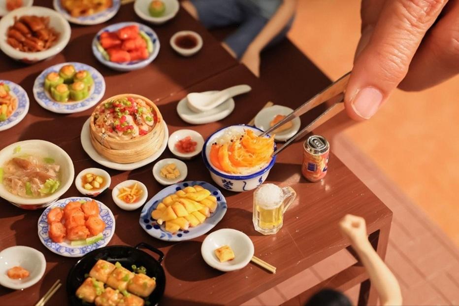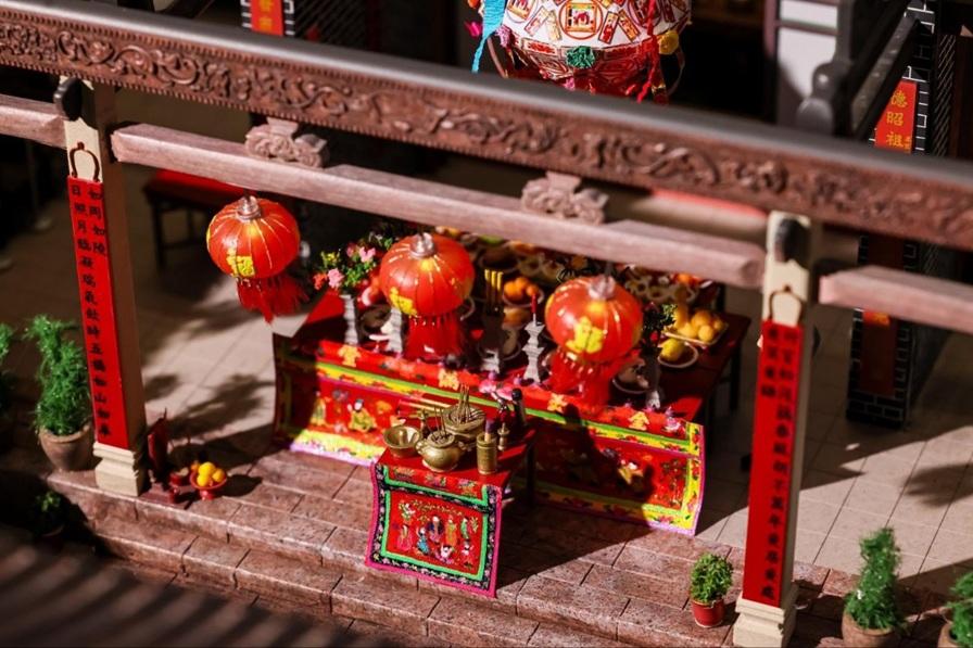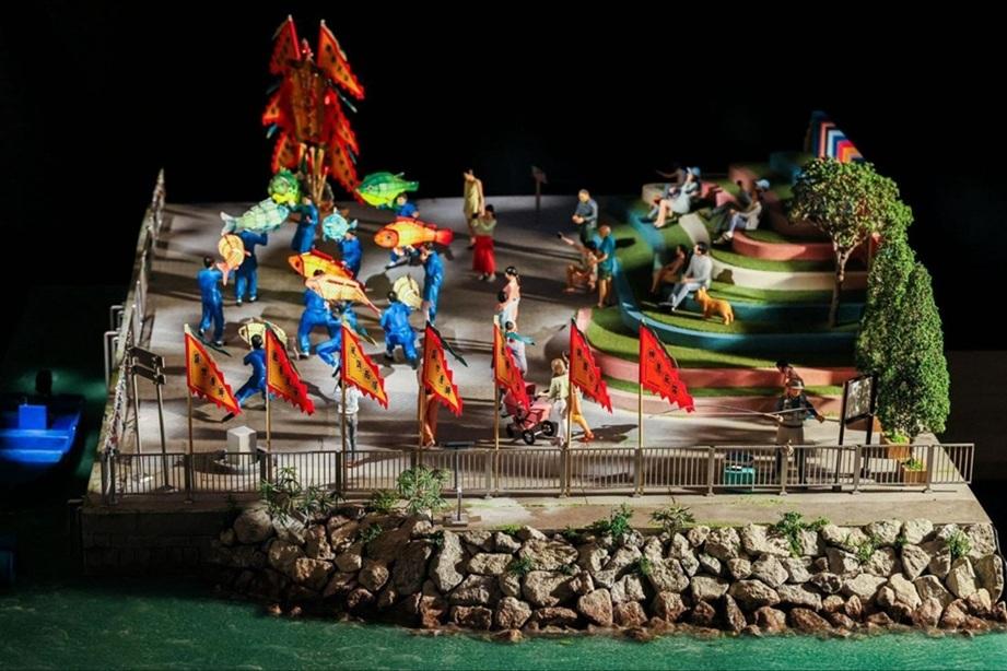 最後諗通了,決定做歷來第一個以鄉村習俗文化為主題的微型展,加入豆腐花店、圍村客家菜、家鄉茶粿等小品全新作品。農村風味的美食,一定受歡迎。於是,我馬上拿起紙筆,在紙上繪畫豆腐花店、茶果店客家菜館和戲棚後台的平面圖。我像一個裝修佬,決定哪裏是窗哪裏是門、哪裏放桌椅⋯⋯最後邀請不同藝術家分工合作,把紙上夢想變成現實。