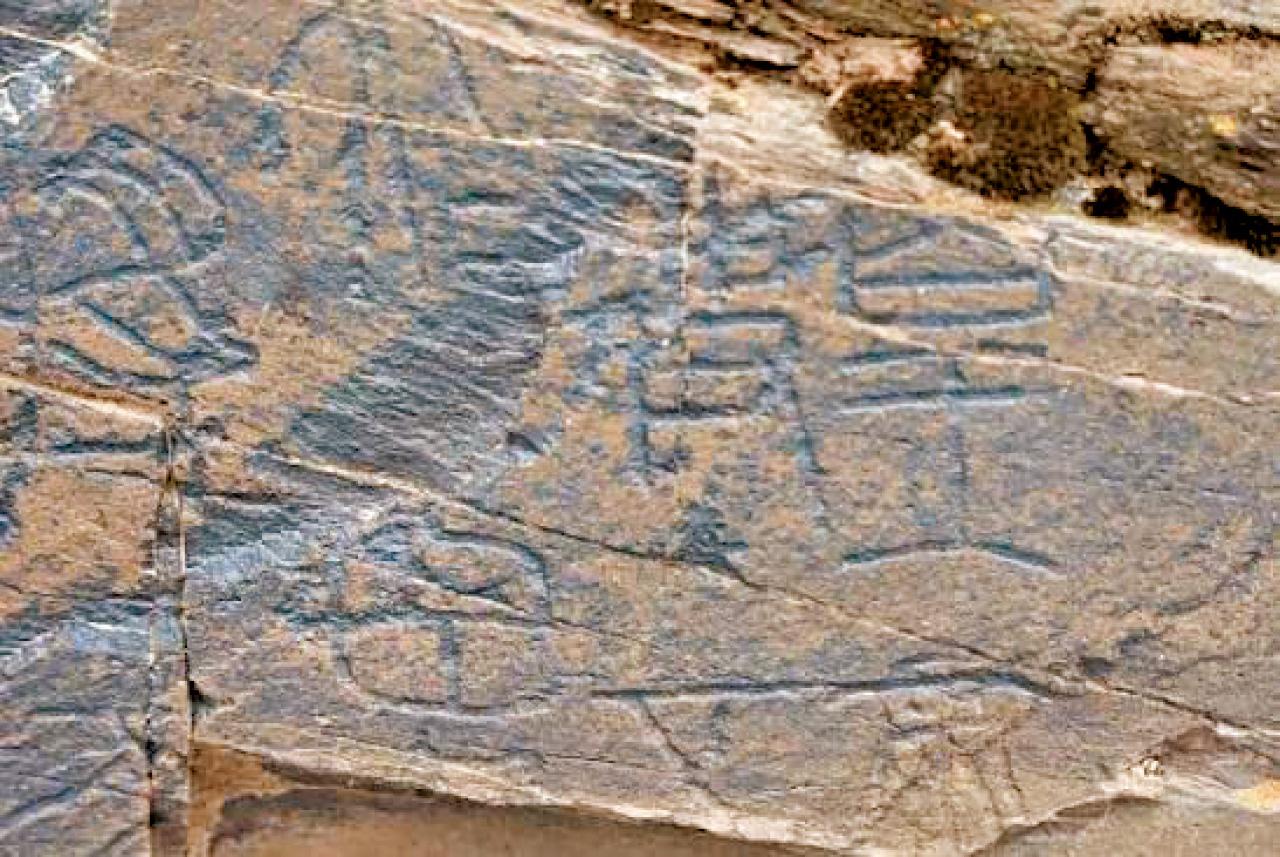 今年6月社科院考古所研究員仝濤發表了《實證古代「昆侖」地理位置—青海黃河源發現秦始皇遣使「采藥昆侖」石刻》一文。這片石刻位於青海黃河源附近,文字刻鑿在露天陡坡壁面,全文共37字,風格屬秦篆,保存較完整的文字信息有「皇帝、五大夫、采樂、卅七年三月、百五十里」等關鍵字。