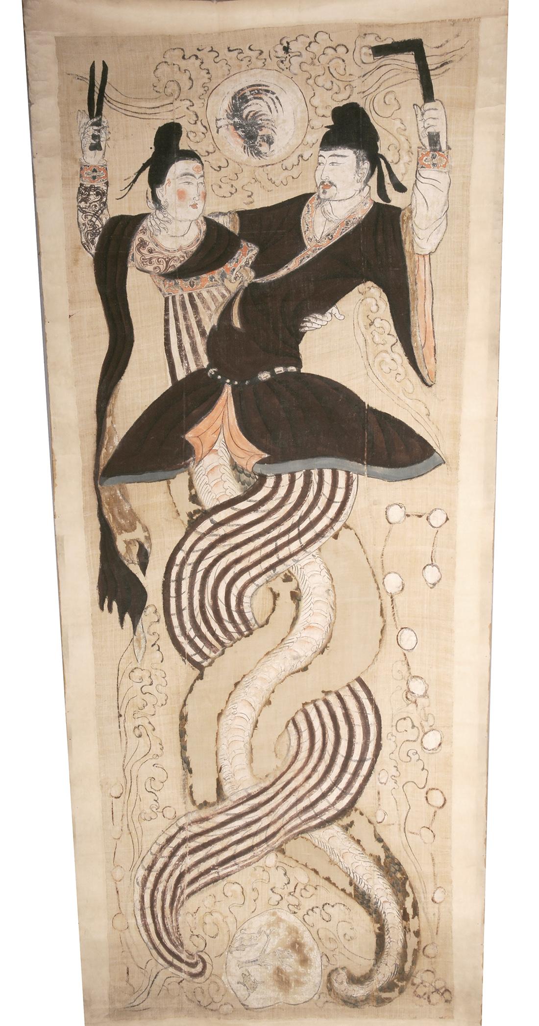新疆吐魯番阿斯塔那77號墓出土的《伏羲女媧圖》,見證中原漢文化與西域地方文化的融合。(新疆維吾爾自治區博物館藏)
