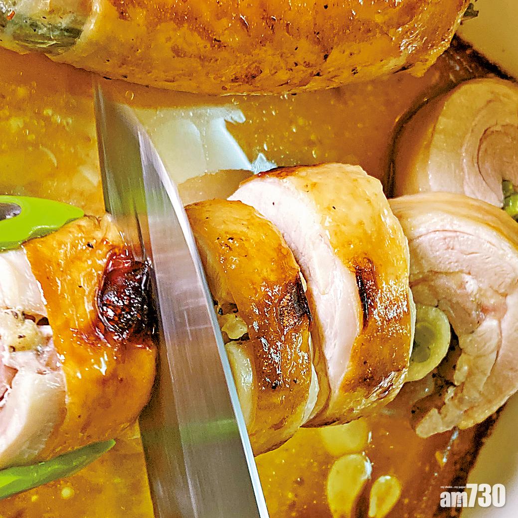 7.用二百度焗至表面金黄,再切開雞卷即成。
