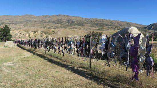 原來在南島近皇后鎮有一個名叫Cardrona的地方,據說1999年曾有四名女子貪玩在這裡脫下內衣掛在農場的鐵絲網圍欄上就離開了,其後越來越多人仿效,逐漸形成了一堵內衣牆,曾因為影響男性駕駛人士的專注力而被清走,但來掛內衣的人更多,令該處成了一個讓人慕名而來打卡的景點。這裡獲命名為Bra Fence 胸罩圍欄,當地熱心的志願者組織了一個慈善機構乾脆就改了個名叫BraDrona,為乳癌患者籌款,引起人們對女性健康的關注,更籌得可觀的善款,可算是無心插柳地用一個很有效創意的宣傳做了一件很有意義的事。