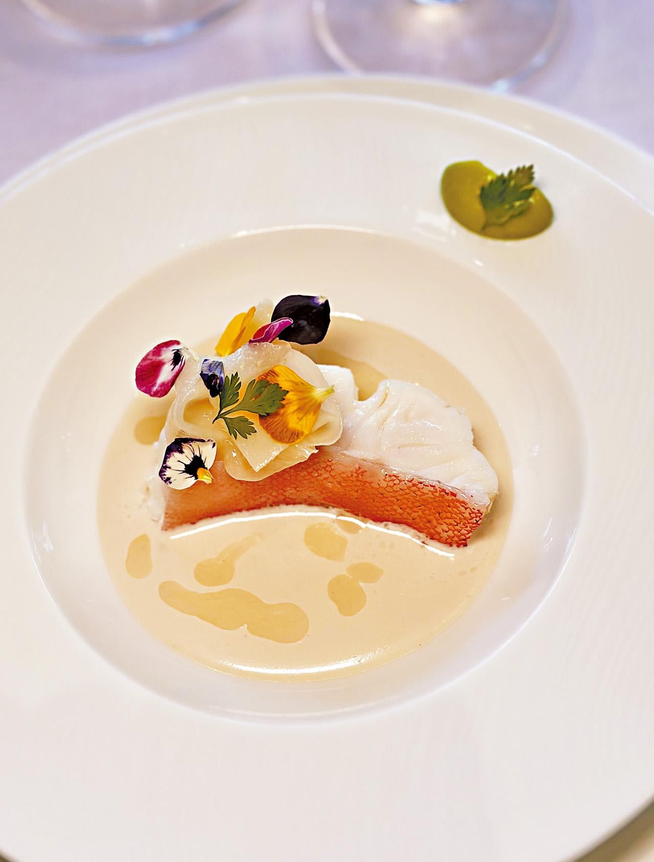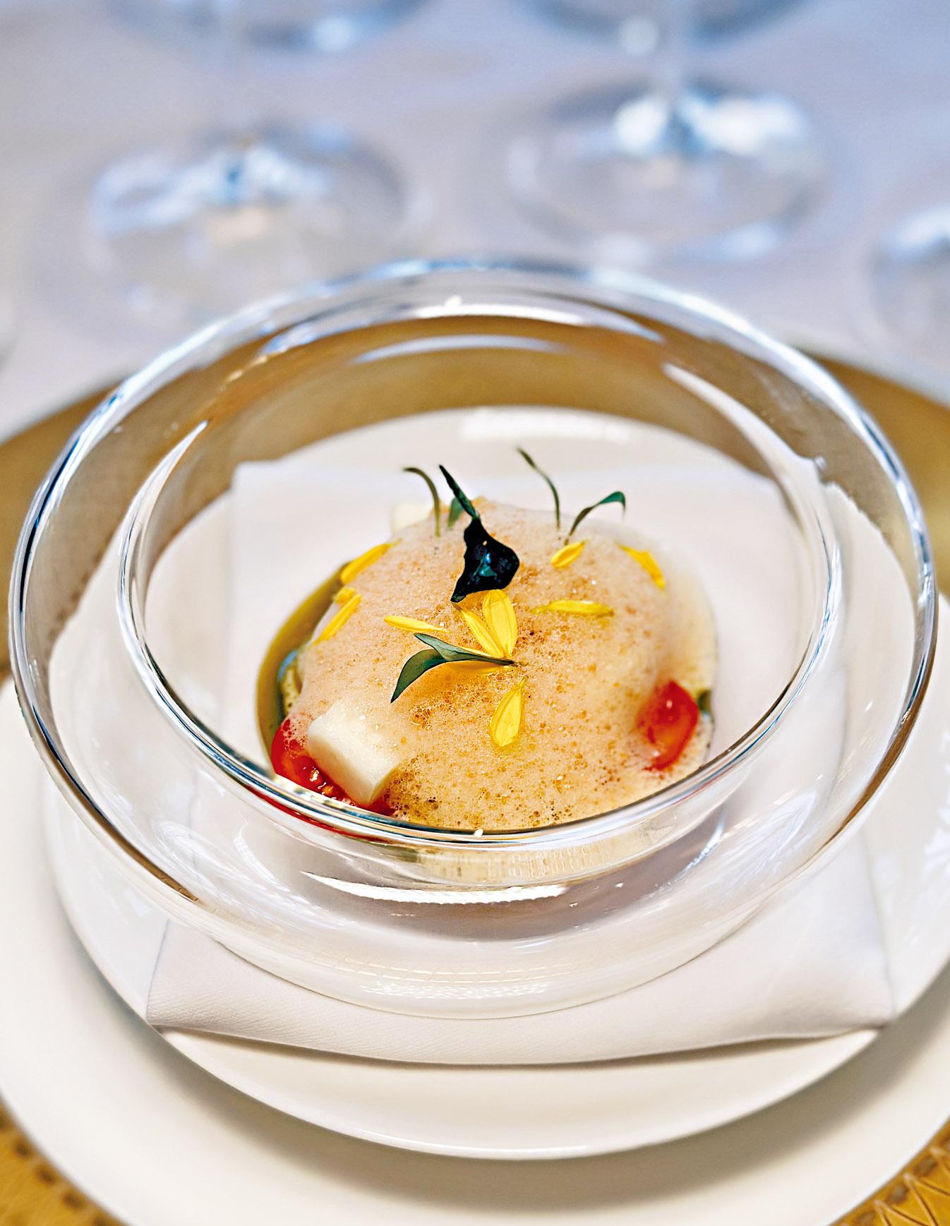 台中JL STUDIO的新加坡籍主廚Jimmy Lim,做的是現代新加坡料理,我對於Jimmy Lim的認識係得咁多,來澳門之前亦刻意地不上網search JL STUDIO,白紙一張去接觸Jimmy Lim,menu的其中一個高潮位,是一道我前所未見的「海南雞飯」,端上桌時海南雞飯獨有的香氣撲鼻,而碟上沒有雞也沒有飯的蹤影,取而代之的是一件東星斑,用苿莉香米煮成醬汁,加上雞油、麻油,毫無違和感,而偽裝成雞肉的東星斑,處理手法亦頗為巧妙,魚肉僅熟,魚皮卻帶點煙韌感。原來Jimmy刻意將魚皮弄得熟一點,吃起來像吃雞皮一樣,OMG!非常之好吃亦非常之黐X線的一道main course,顛覆我的三觀,事隔數星期我仍然滿腦子都係「沒有雞沒有飯的海南雞飯」。