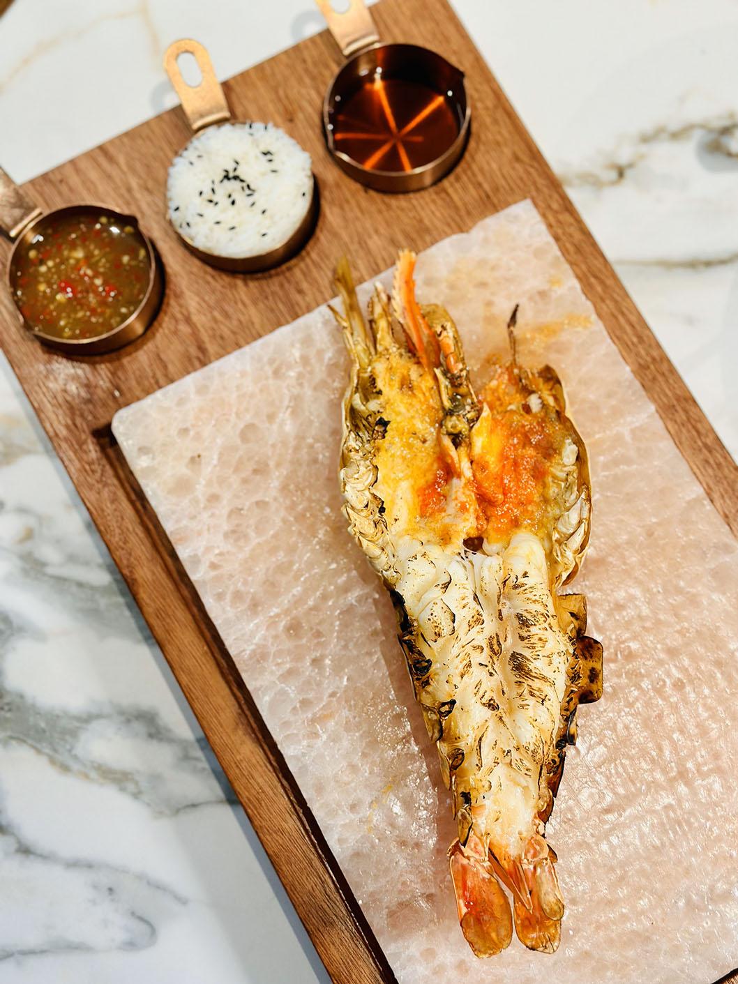 Here Thai Market的菜單設計得好像一本大型雜誌,內容豐富,菜式選擇繁多。招牌菜有用虹吸式方法席前處理的「冬蔭功湯」或「酸辣無骨鴨掌湯」,很有噱頭;「巨型羅氏蝦」蝦頭膏油撈飯,吃得人超級滿足。「冬蔭蝦頭膏蟹肉奄列」濃郁軟滑齒頰留香;「泰式牛肉火鍋」湯底用由泰國煮好直飛香港的船麵湯頭,格外滋味。「三色咖喱」包括綠咖喱雜菜、紅咖喱牛面頰和黃咖喱蟹,咖喱汁同樣泰國製作Chef Ton 監工,直運香港,不是一般貨色。此外,更把泰式街頭燒烤引入餐廳,燒烤項目眾多,例如烤生蠔及烤原條魷魚等都風味十足。總括來說,Here Thai Market可說是全能泰菜,真正能帶我們「一口去到東南亞」!
