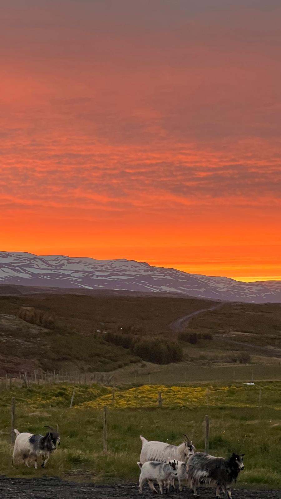 冰島的夏天,是不夜城,日落時太陽沒有真正的落下,只剛沉到地平線下,餘光令天空完全亮白,就如我們平時見到太陽剛剛西下之後的情況一樣,走在街上,甚麼路況也看得見。