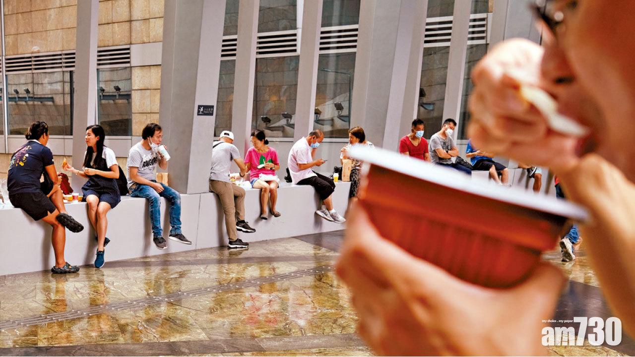 食肆全日禁止堂食下,市民在室外進餐。(資料圖片)