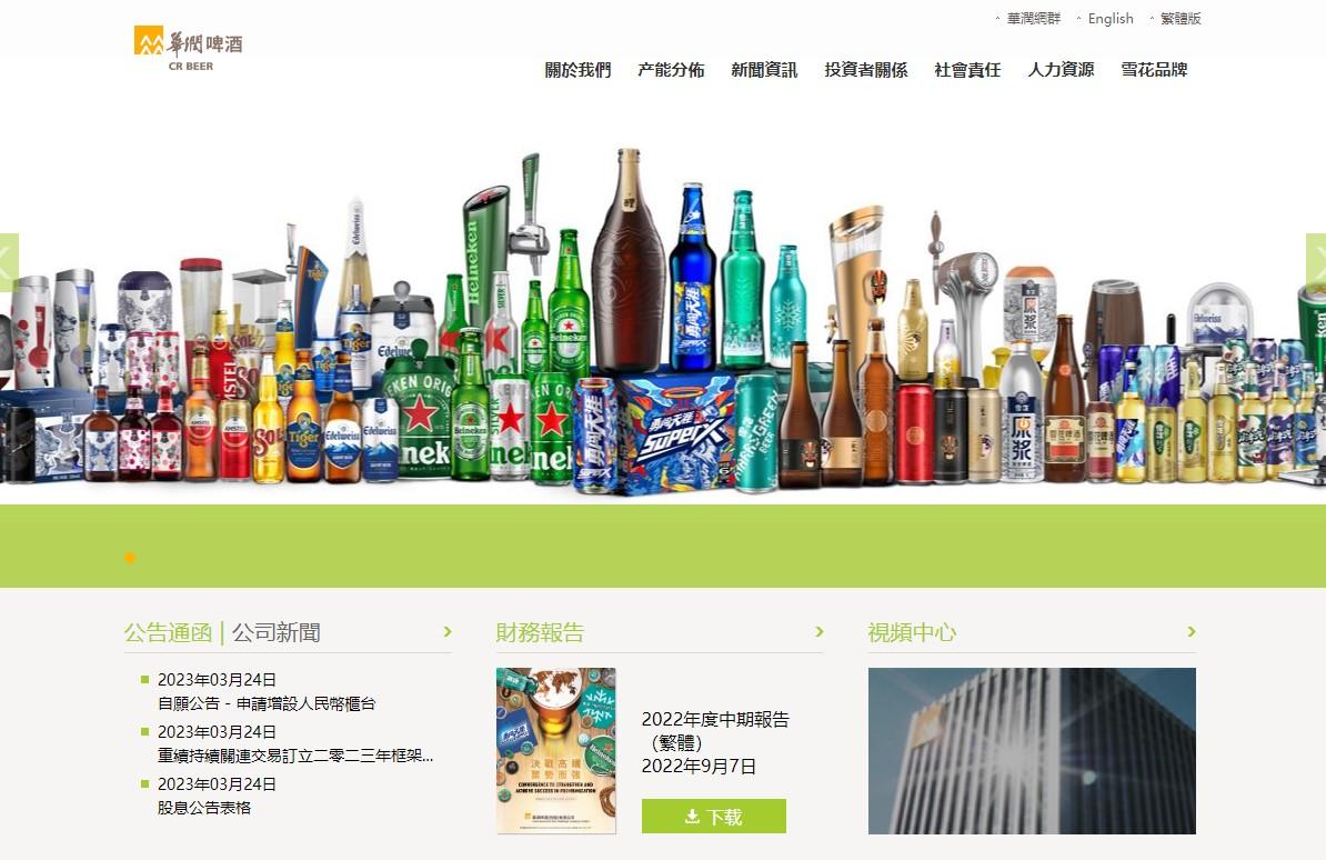 華潤啤酒去年高端產品銷售增長理想,未來會繼續「決戰高端」的戰略。圖為其網站。