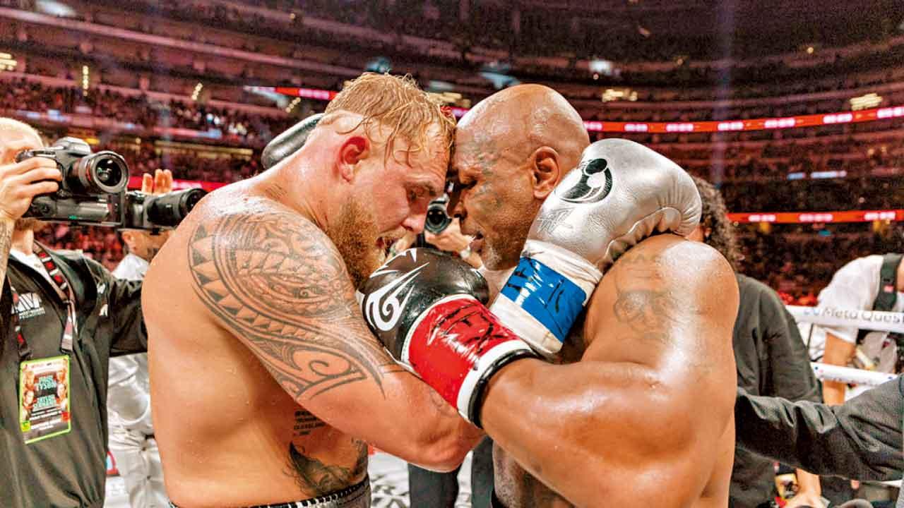 網紅Jake Paul(左)由拍攝搞笑影片,到幾年前轉型職業拳擊,並可在擂台上挑戰Mike Tyson(泰臣,右)。(網上圖片)