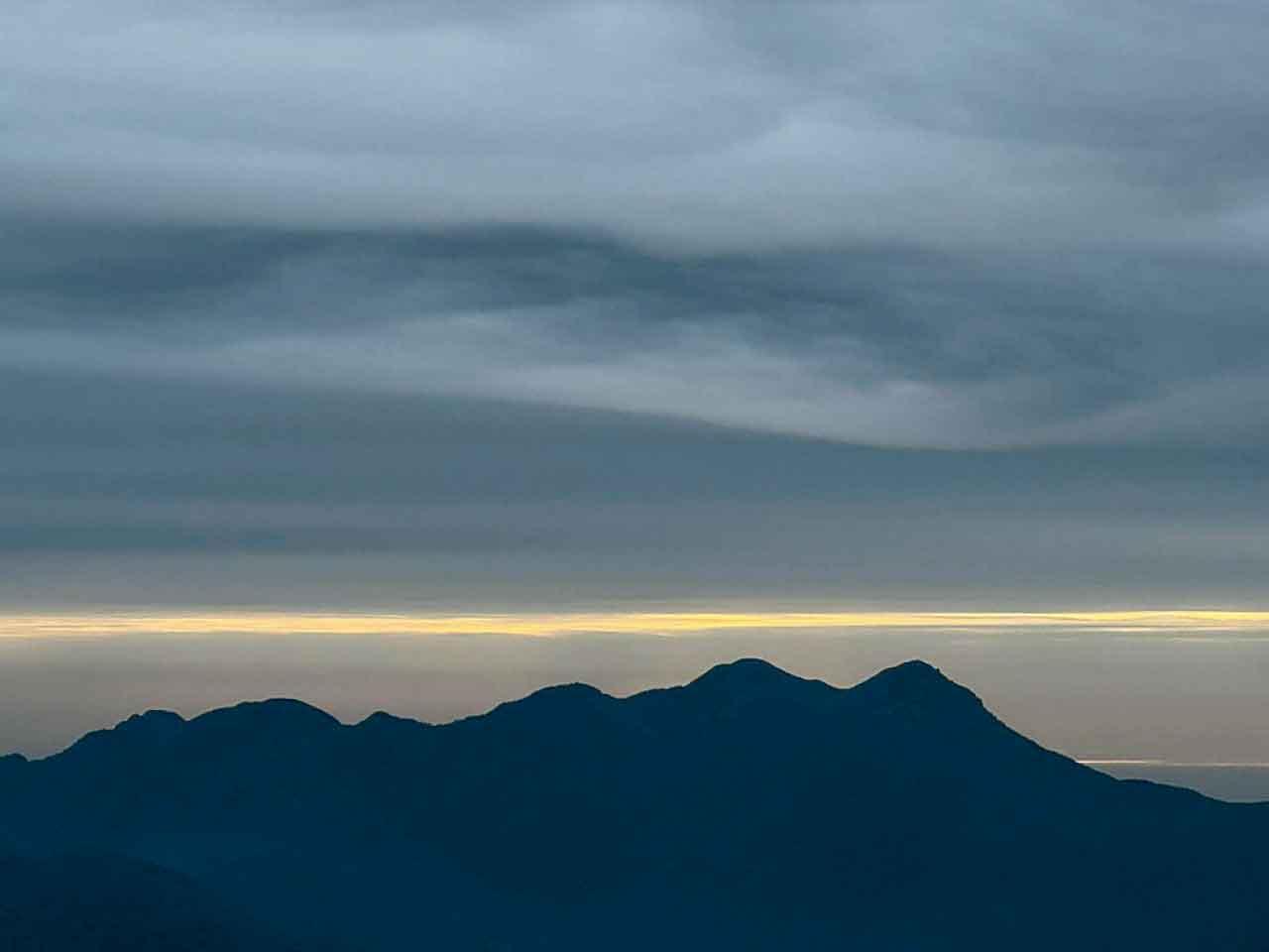為心靈注入能量,我相信「自然」是良藥。清晨五時出發去大帽山半腰,起動上「白波」,期待看日出。可是在天空還是暗黑時便在毛毛細雨,欣賞日出機會幻滅。但清涼天氣,感覺平靜,久違的舒泰輕鬆。慢走上大霧山天氣站,天仍是灰雲密布。在還未來得及失望時,雲層間顯現一線金光,在天地之間,起伏山巒上劃破長空,大自然充滿希望。續走,眺望煙霧彌漫遠山,像在漫天畫布上的水墨畫。心定神閒,不禁閉目,用五感嘗味眼前景致。帶著心靜如水的境界,由漆黑到白天,鳥瞰山下繁榮都市,當下就是我城不停展現的生命力。