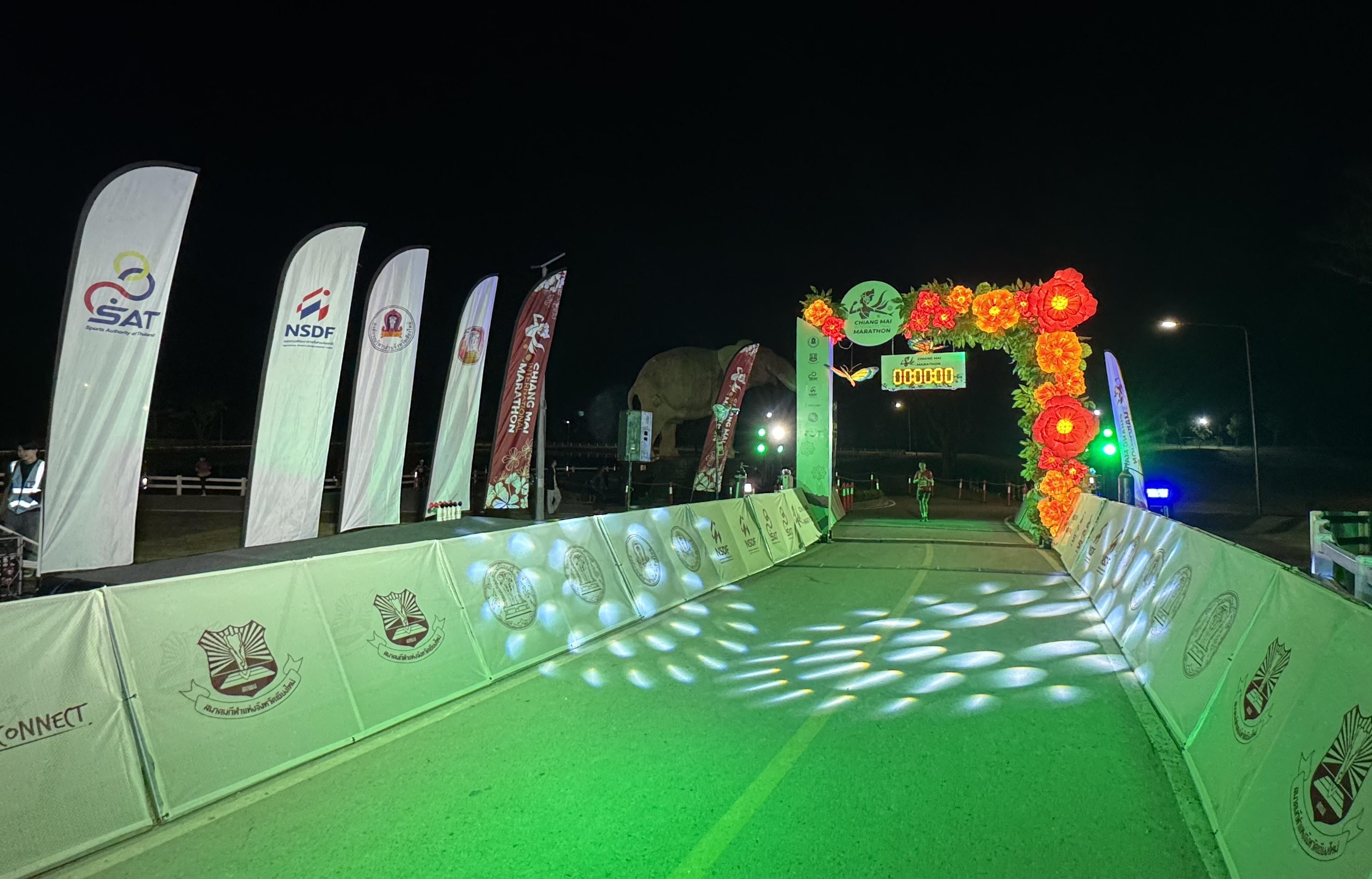 上期提及小弟成功無傷完成UTMB清邁大象100公里,全力休息,再加入泰式按摩「療程」,星期日再戰全馬。全馬清晨三時起跑,二時許到達會場,已碰到香港來的跑手,更有我司「全城跑團」的「跑首」Stephen、ET等在埸。大家興奮地相互拍照,跑半馬的也提早到場打氣。我竟突然被大會邀請上台鳴槍起步,在眾跑手們後接著隊末出發。今回我以「小白」丫拖應戰,連襪子也沒穿,主持人Sophia給嚇了一跳:「你是認真的嗎?」