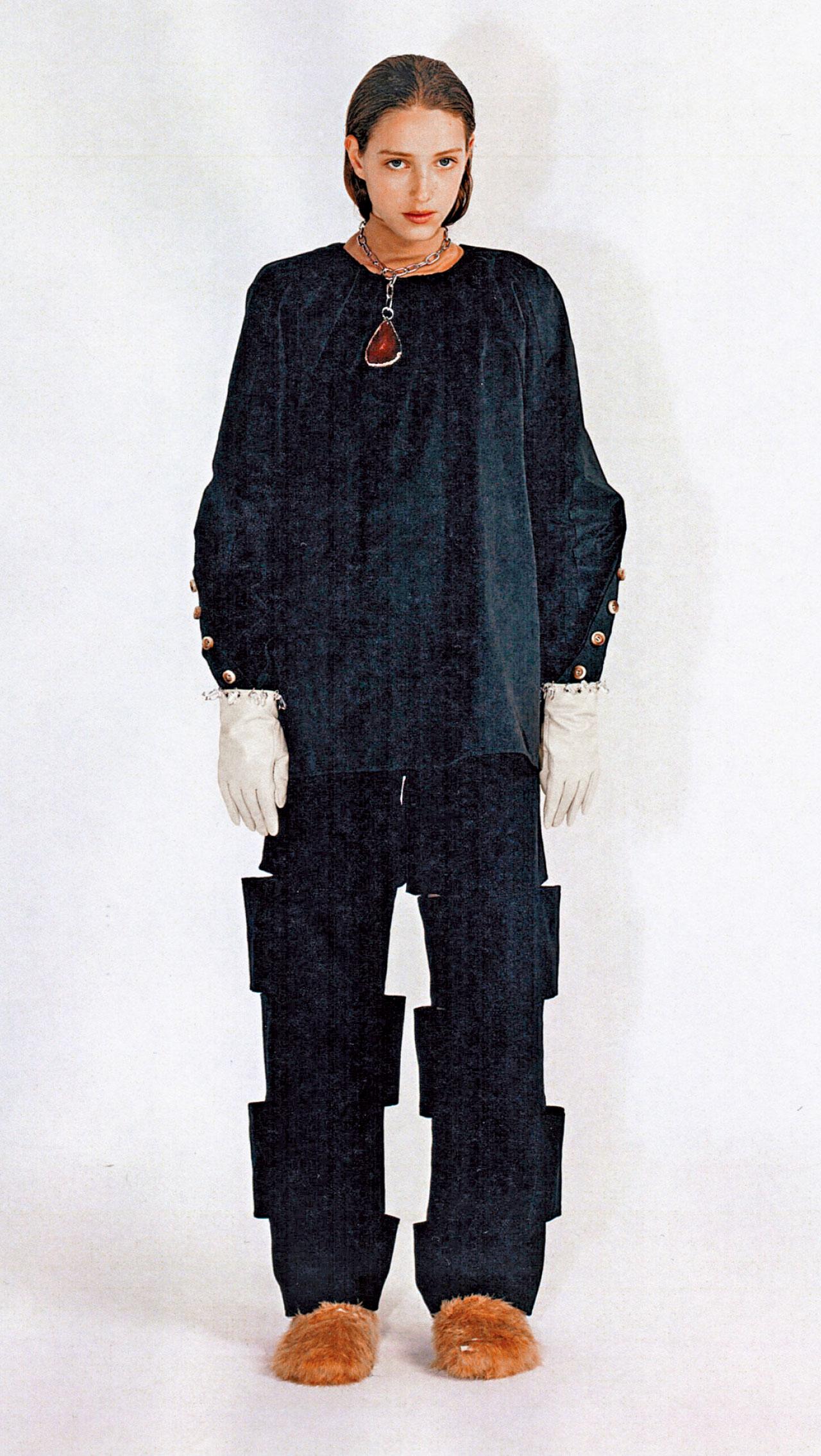 韓國出生,巴黎學習,注定品牌是個混種,他們也拒絕用法式或韓式風格來定義自己,看他們來季秋冬的「錯視」切割牛仔褲,有濃濃街頭風格,一眼看上去除了覺得像古早解構先鋒Margiela會做的東西,跟當下的Balenciaga或Y-Project也像親戚,都是同一個祖宗出來似的。