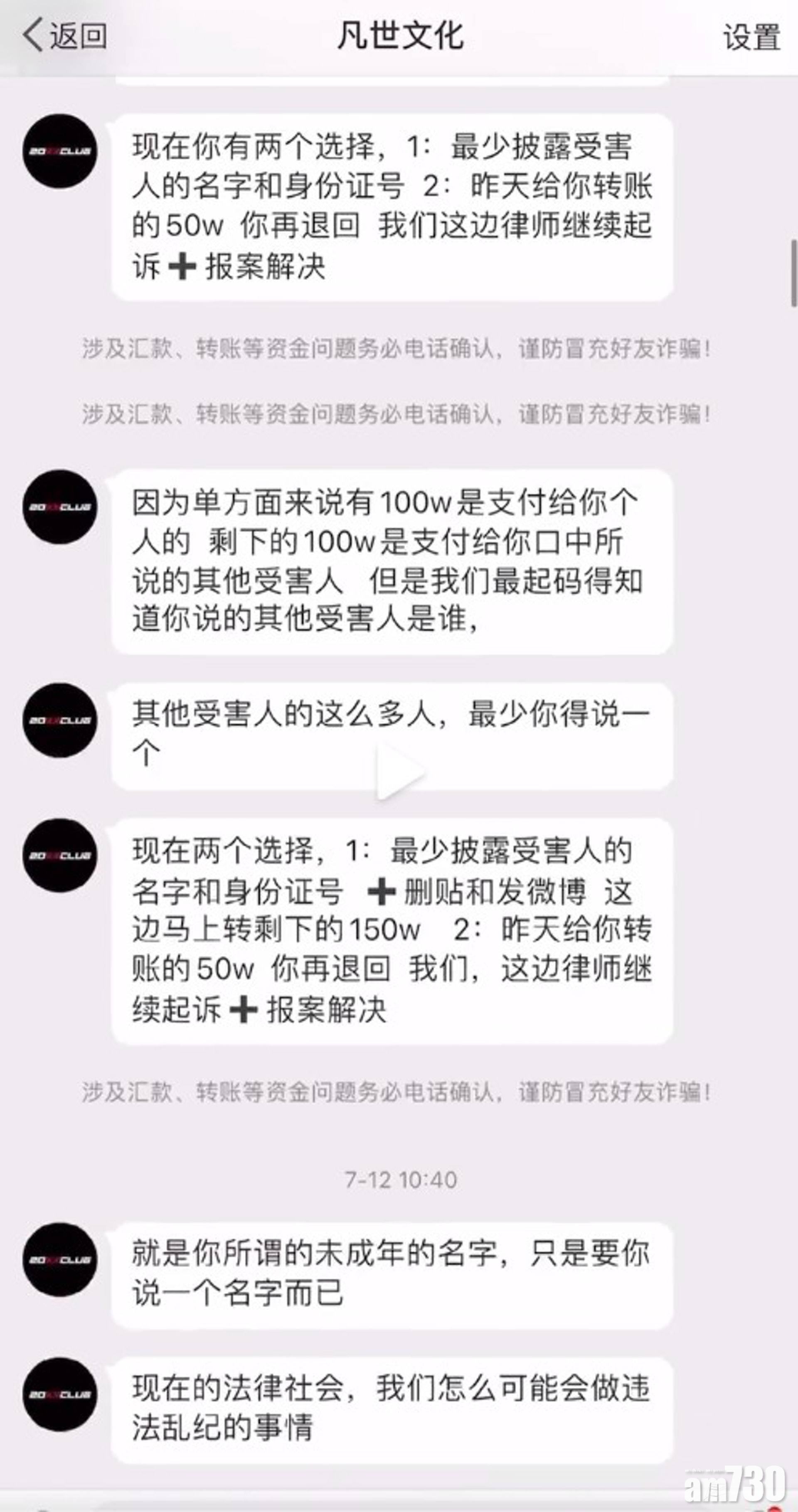 吳亦凡方面不停向都美竹要求受害者名稱。