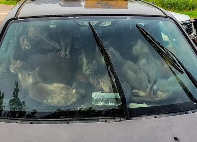 47隻貓咪與主人逼住車上苦忍酷熱 背後有心酸故事