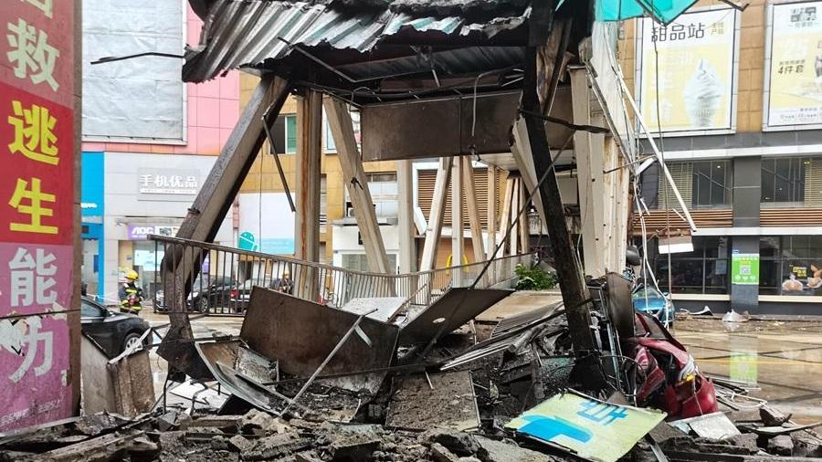 多圖|東莞商場行人天橋倒塌 壓毀5車