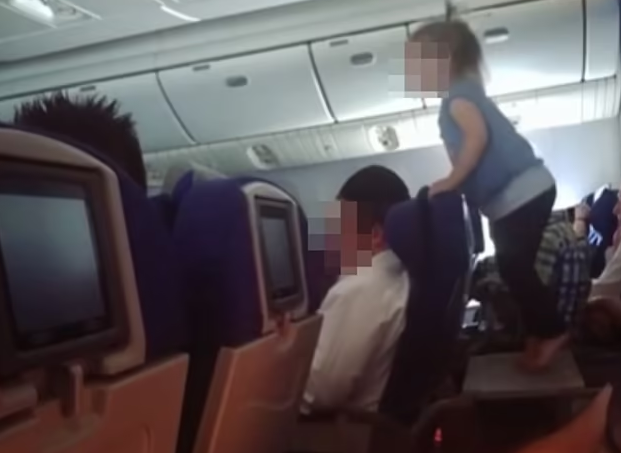 女童搭飛機爬上餐枱狂跳 網民眼火爆鬧爆家長︰飛機應設「兒童禁區」(有片)