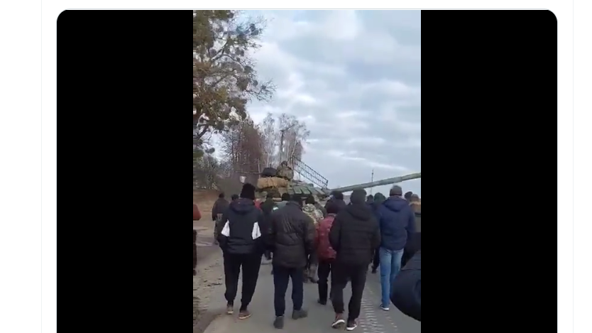 烏克蘭局勢|一群手無寸鐵民眾抵抗俄坦克邁進 (有片)