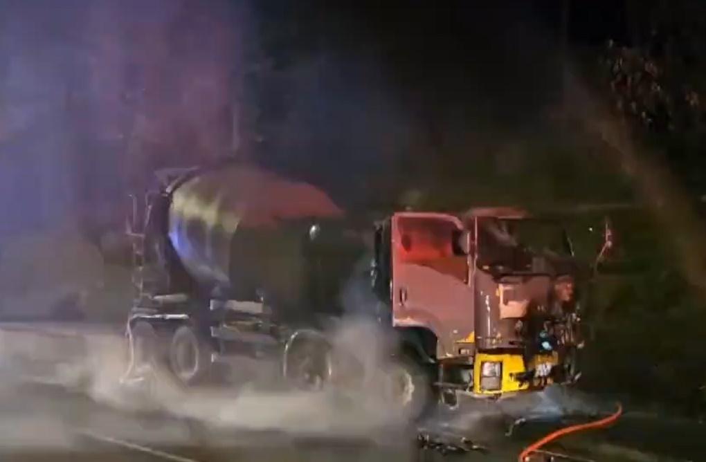 青衣田螺車起火 司機試圖救火無果由消防撲熄