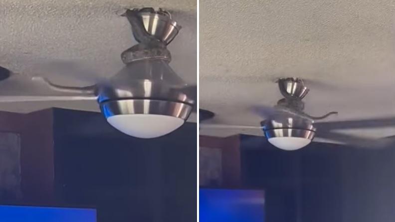 黑色喜劇?!蛇纏住吊扇被狂fling 下一秒噴飛 拍片者「中招」(有片)