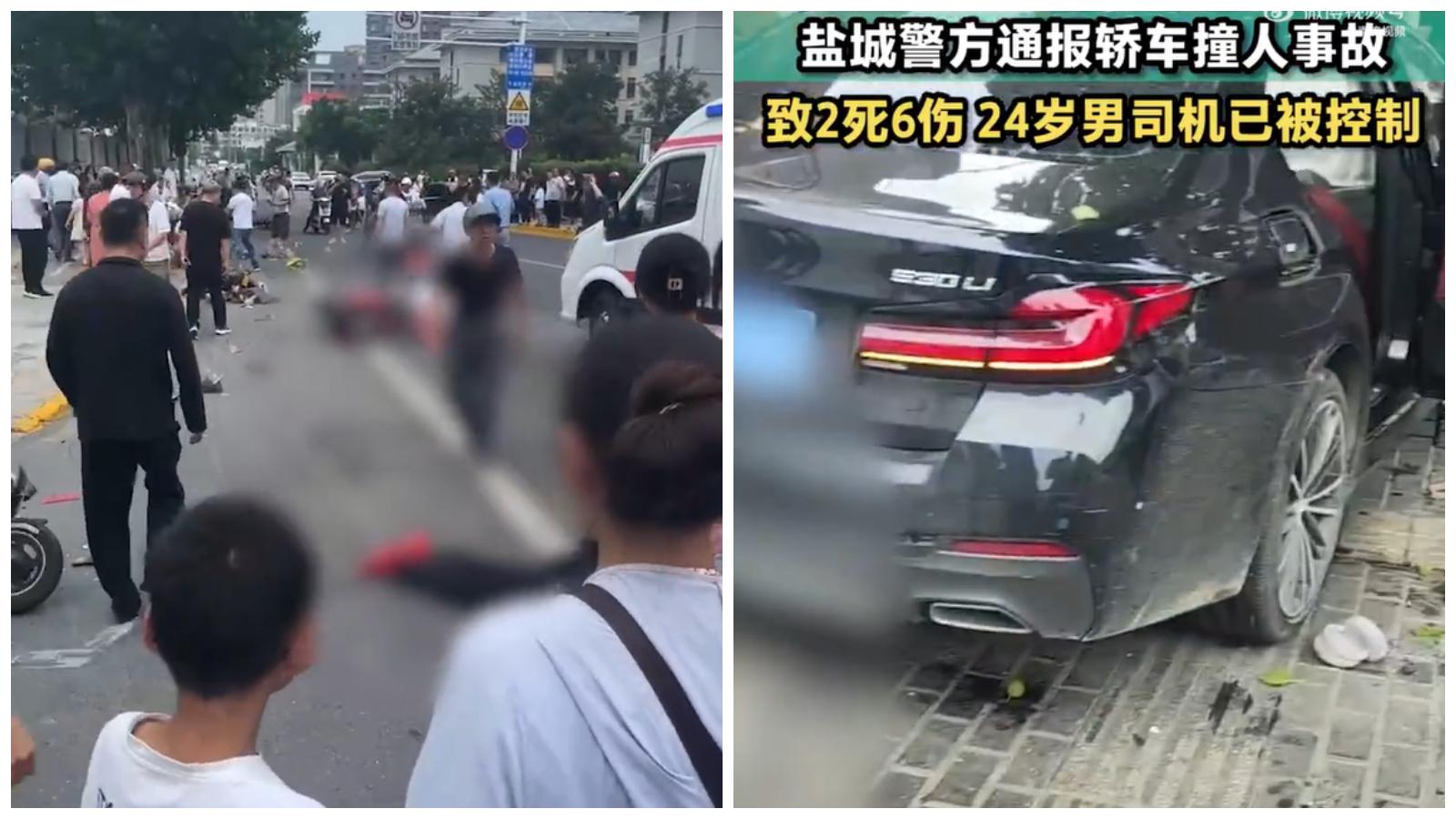江蘇鹽城BMW衝撞人群釀2死6傷 24歲司機當場被捕(有片慎入)