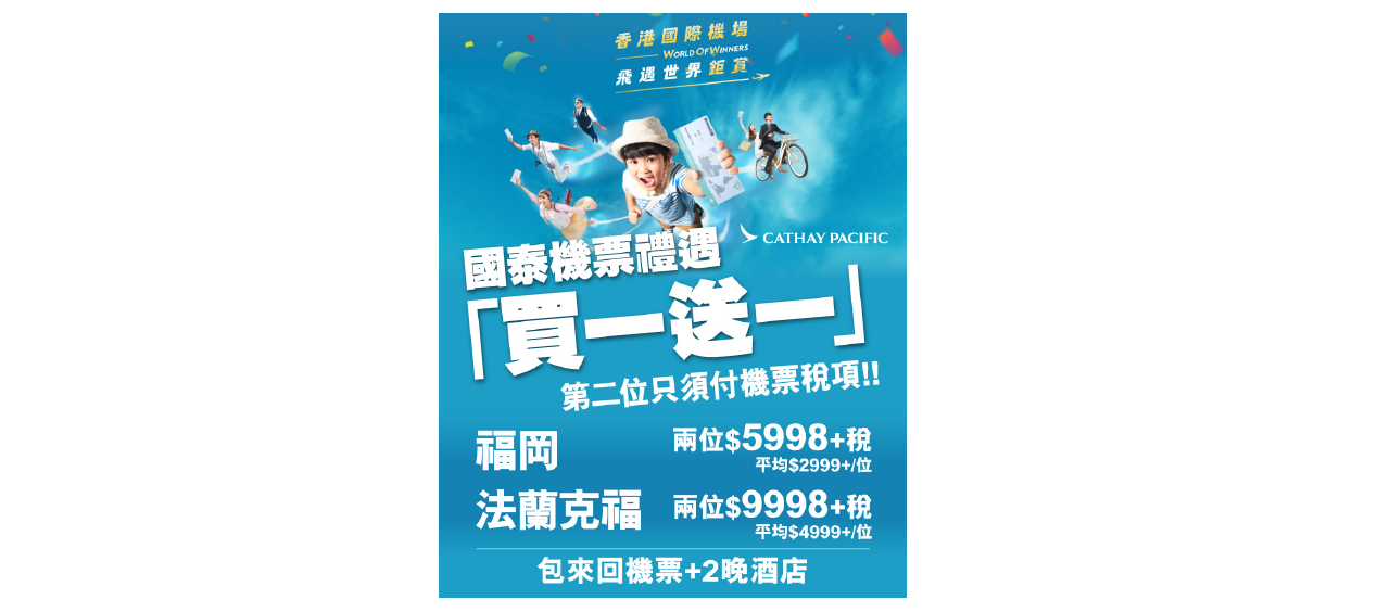 東瀛遊推震撼【國泰航空福岡/法蘭克福買一送一機票禮遇】雙人福岡連2晚酒店套票 人均低至$2999起