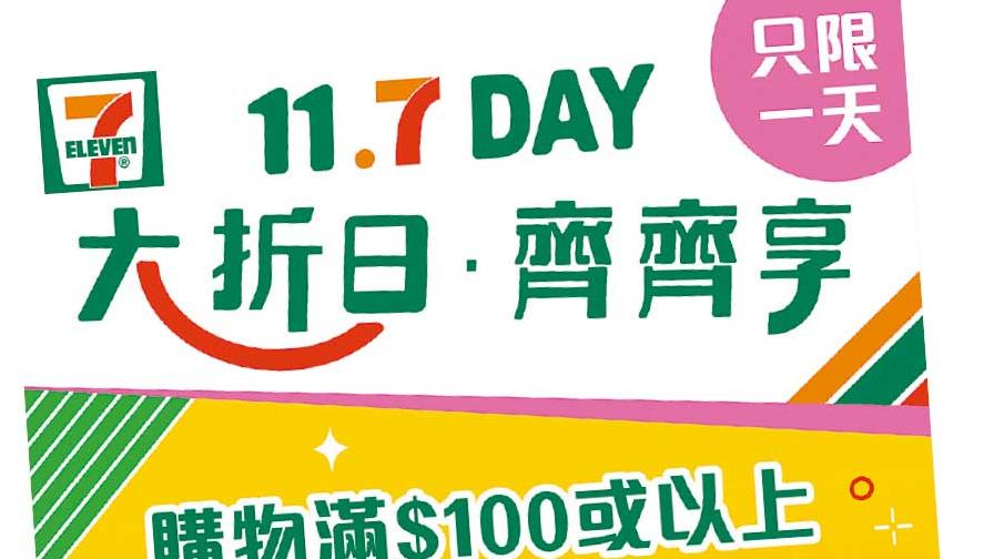 7-Eleven「11.7 Day」大折日 買滿$100全單77折