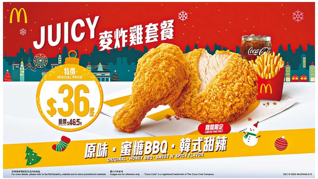 麥當勞「JUICY麥炸雞套餐」登場 $36起歎盡三款人氣口味