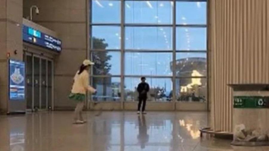 男女仁川機場客運大樓內「打網球」 網民:是南韓人嗎?