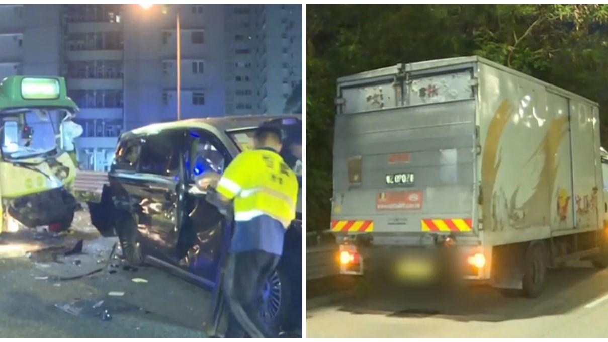 獅隧公路3車相撞釀8傷 涉左軚車意外後 小巴收掣不及硬撼