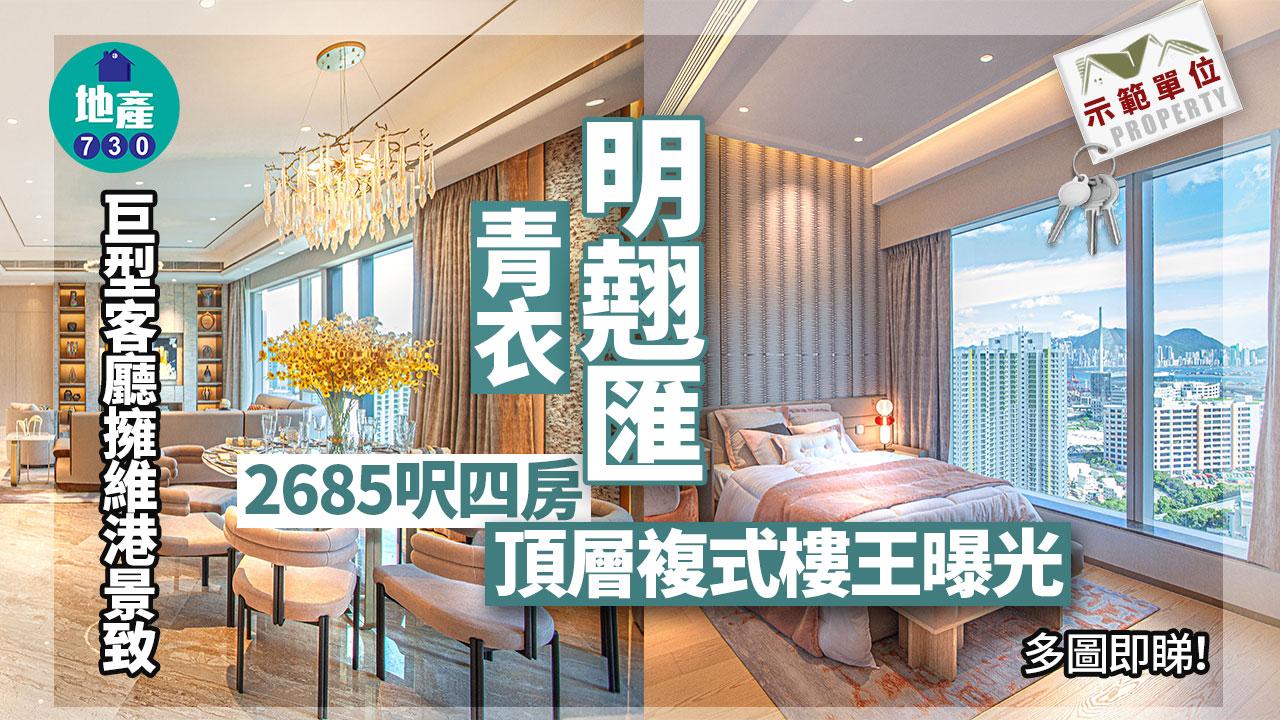 明翹匯示範單位|2685呎四房頂層複式樓王曝光 巨型客廳擁維港景致(多圖)|青衣新盤