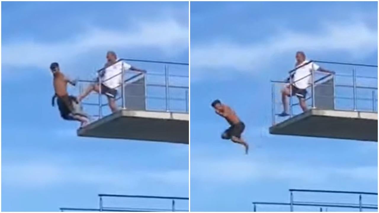 切勿模仿|奧地利男站10米高台唔敢跳 救生員竟從後伸一腳(有片)
