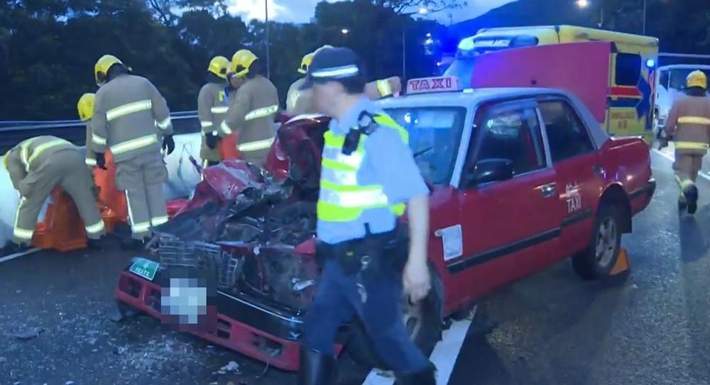 獅隧公路的士撼「死火」小巴釀3傷 的哥一度被困由消防救出
