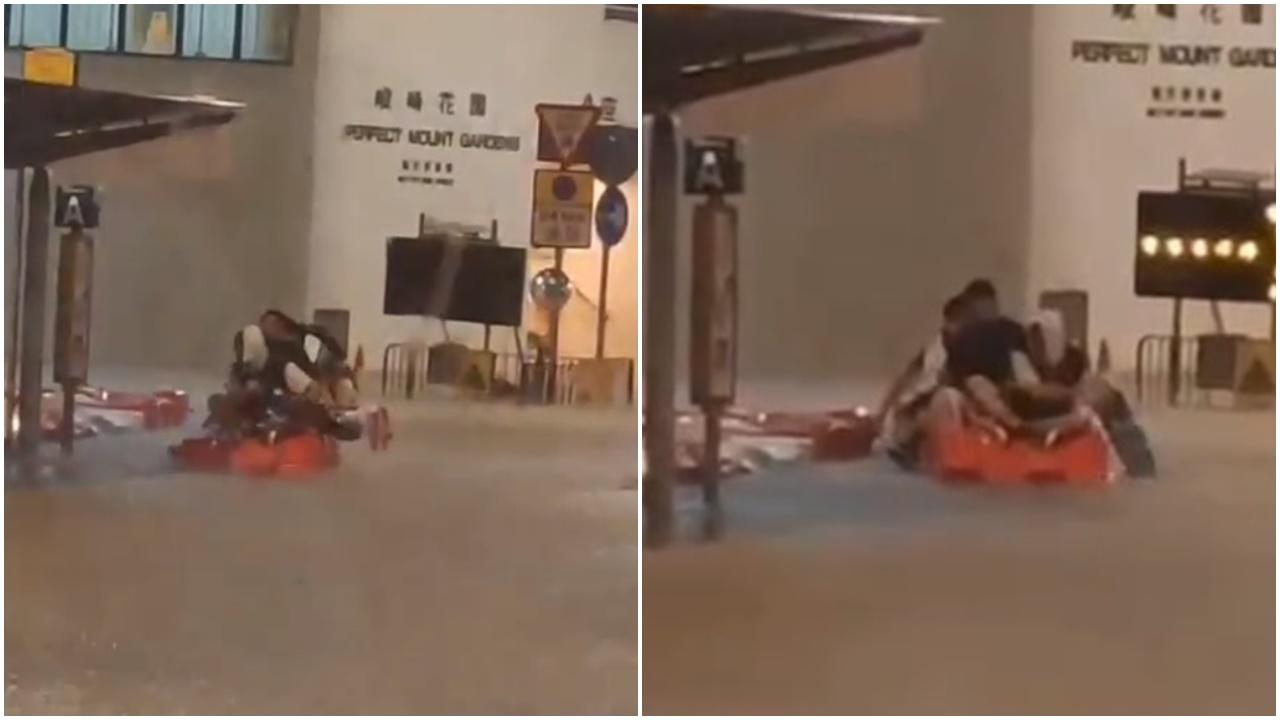 黑雨|市民用水馬自製救生筏 滑板為槳代步 網民大讚「無嘢難到香港人」(有片)