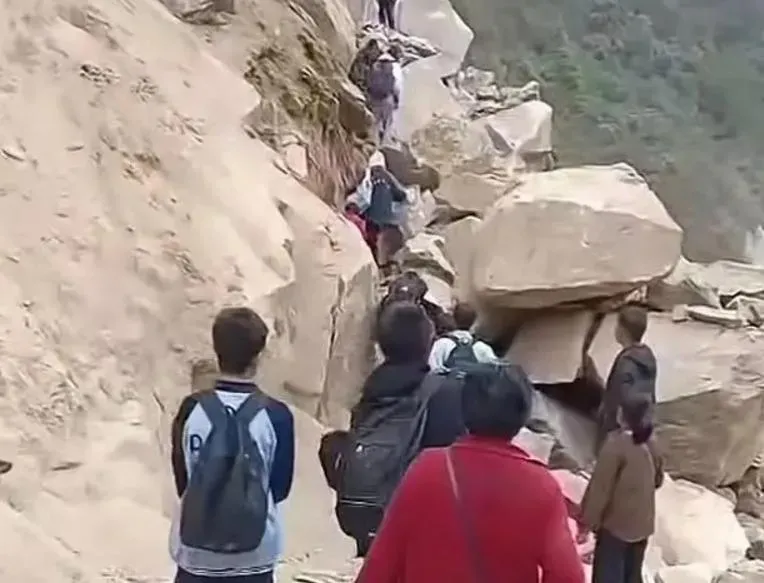 湖南偏鄉唯一聯外道路被巨石堵死 學生被迫翻越大石上學