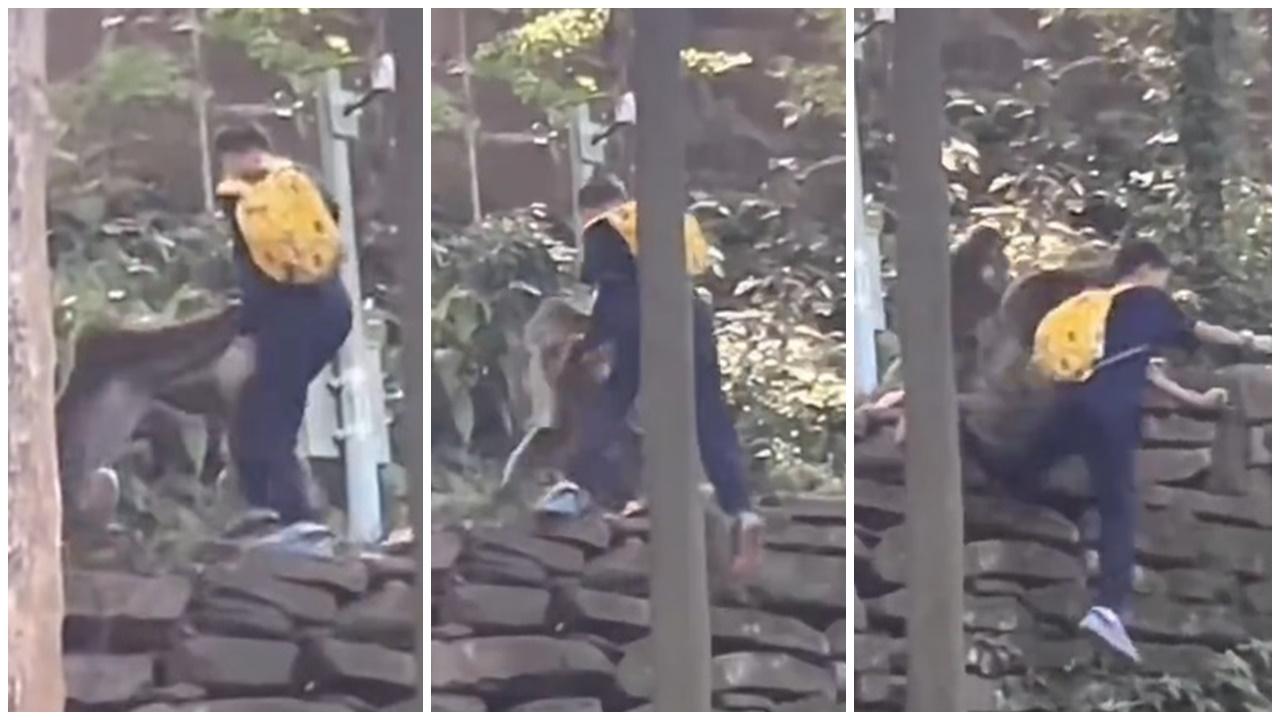 峨嵋山野猴搶食物 二打一將男童推落山坡(有片)