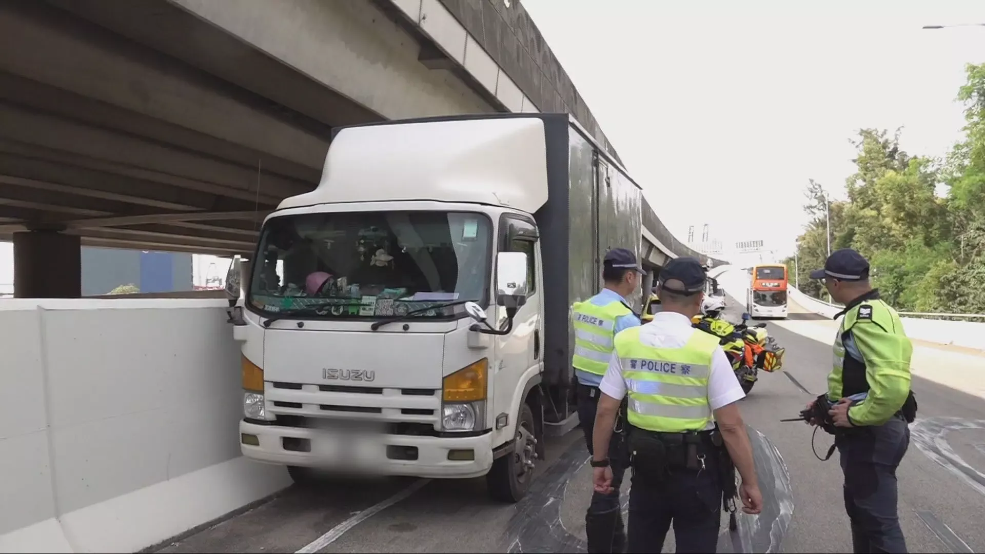 青葵公路泥頭車猛撼田螺車車尾 往機場部分行車線封閉交通擠塞