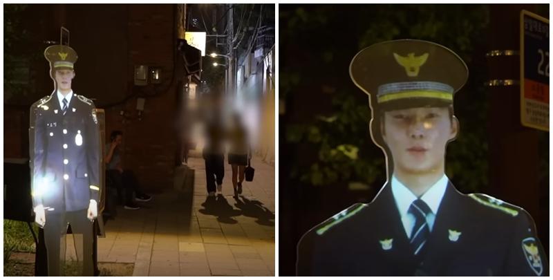 首爾投影警察夜間「站崗」 犯罪率降22% 網民笑因靈異感十足(有片)
