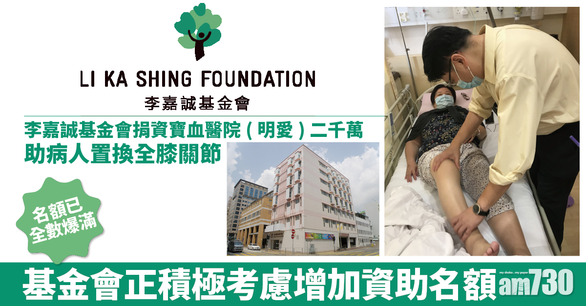 李嘉誠基金會捐資寶血醫院(明愛)二千萬助病人置換全膝關節