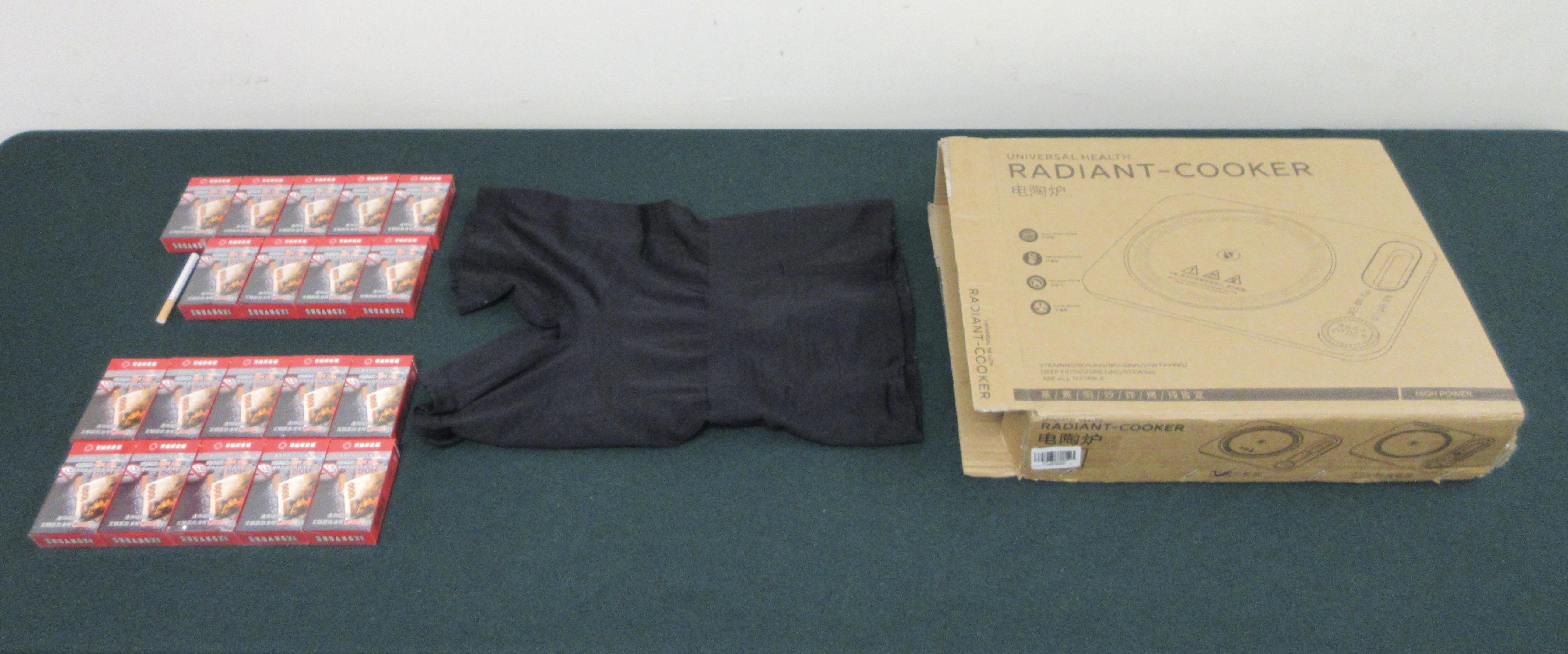電陶爐紙皮盒藏381支私煙抵港,65歲婦罪成判囚6周。(政府新聞處)