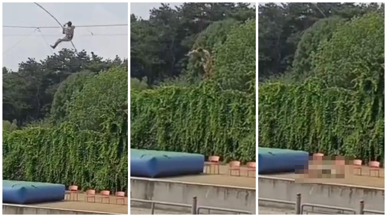吉林高空踩鋼線表演 特技人失足疑斷安全繩直墮地面(有片)