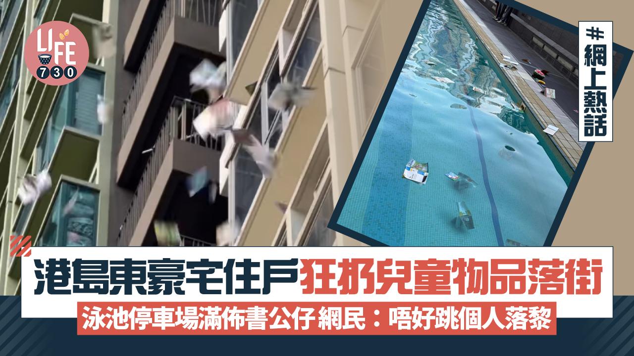 網上熱話|港島東豪宅住戶狂扔兒童物品落街 泳池停車場滿佈書公仔 網民:唔好跳個人落黎