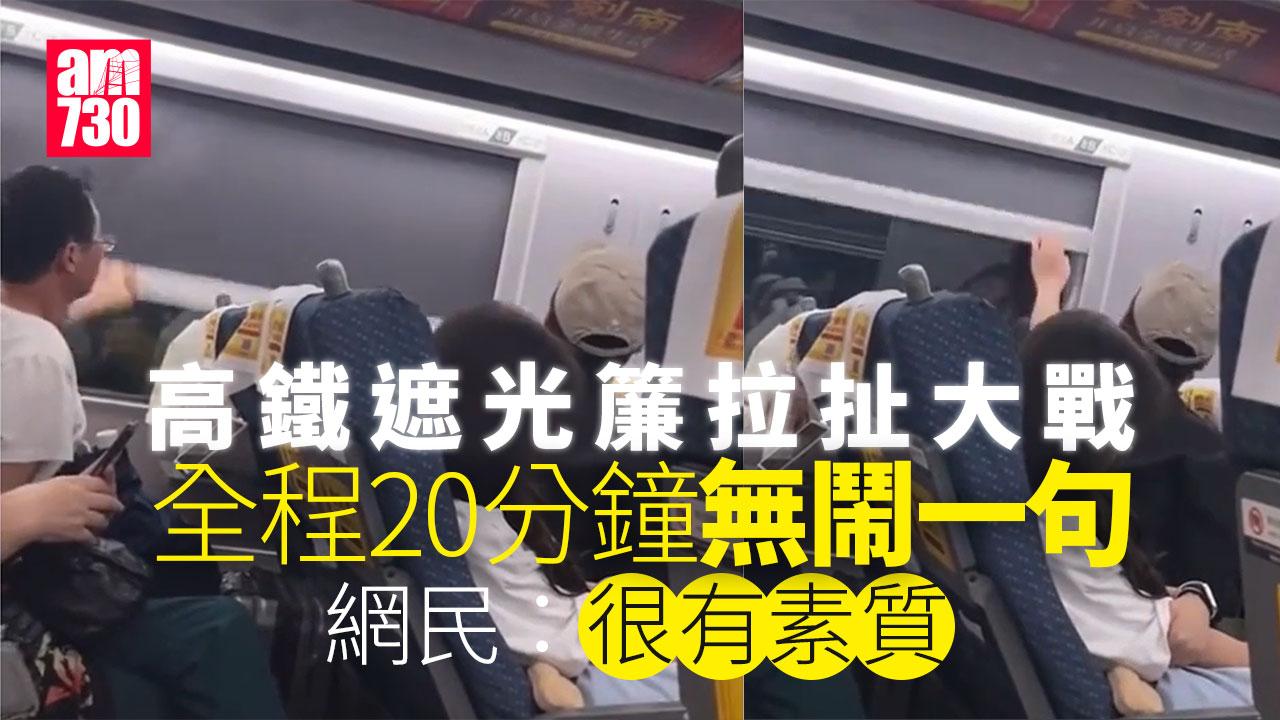 高鐵遮光簾拉扯大戰20分鐘無鬧一句 網民:很有素質(有片)