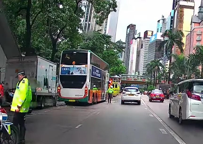 灣仔告士打道貨車猛撼城巴車尾 司機受傷被困