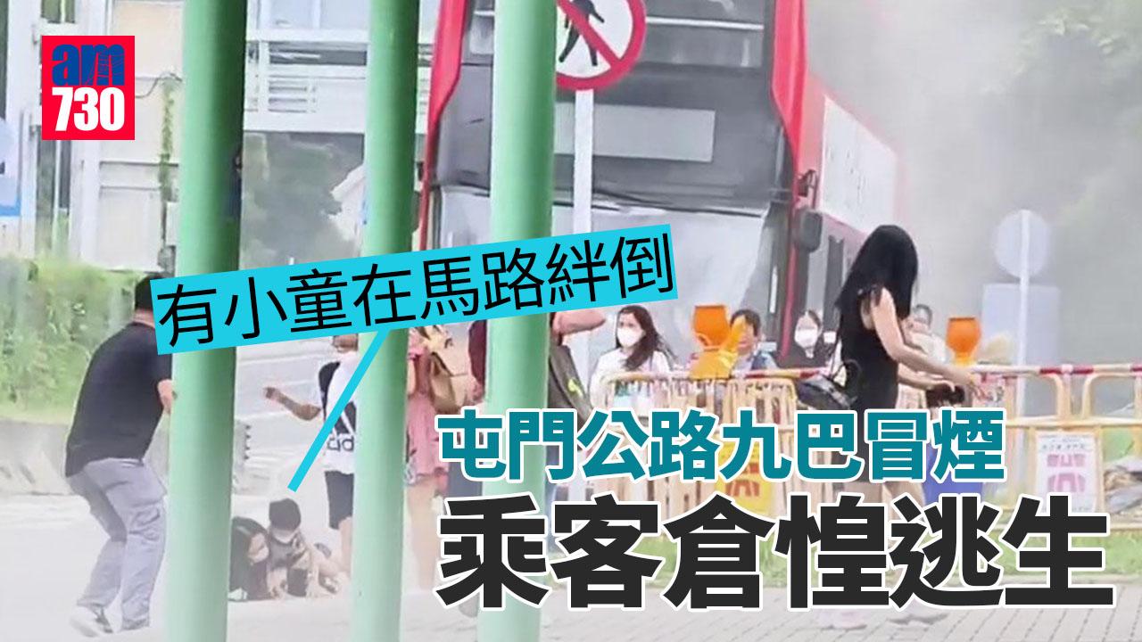 屯門公路九巴冒煙乘客倉惶逃生 有小童在馬路絆倒 (多圖)