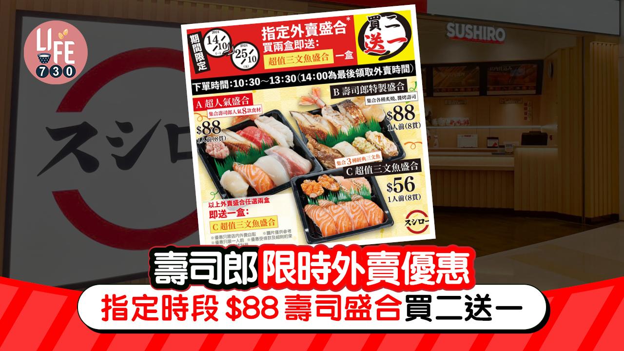 壽司郎限時外賣優惠 指定時段$88壽司盛合買二送一