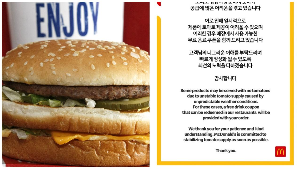 熱浪令番茄失收 南韓麥當勞將暫停添加