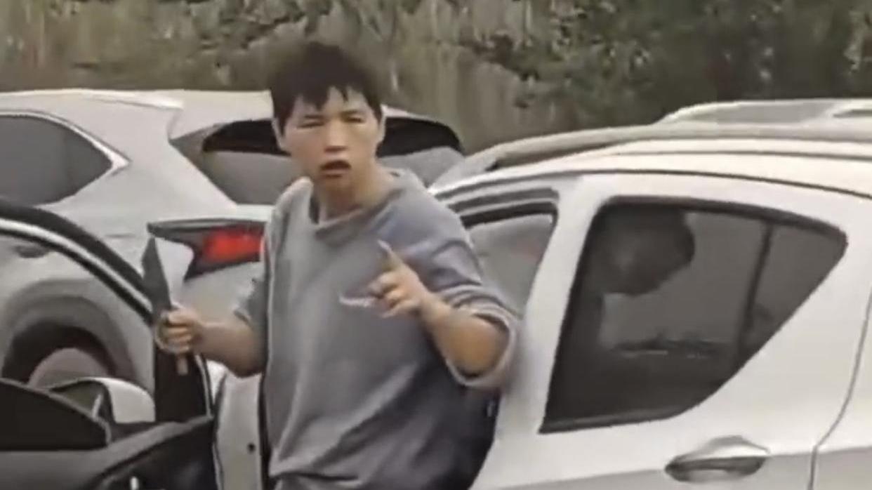 男子持菜刀下車,解釋自己闖關卡是要為兒子買奶粉。(互聯網)